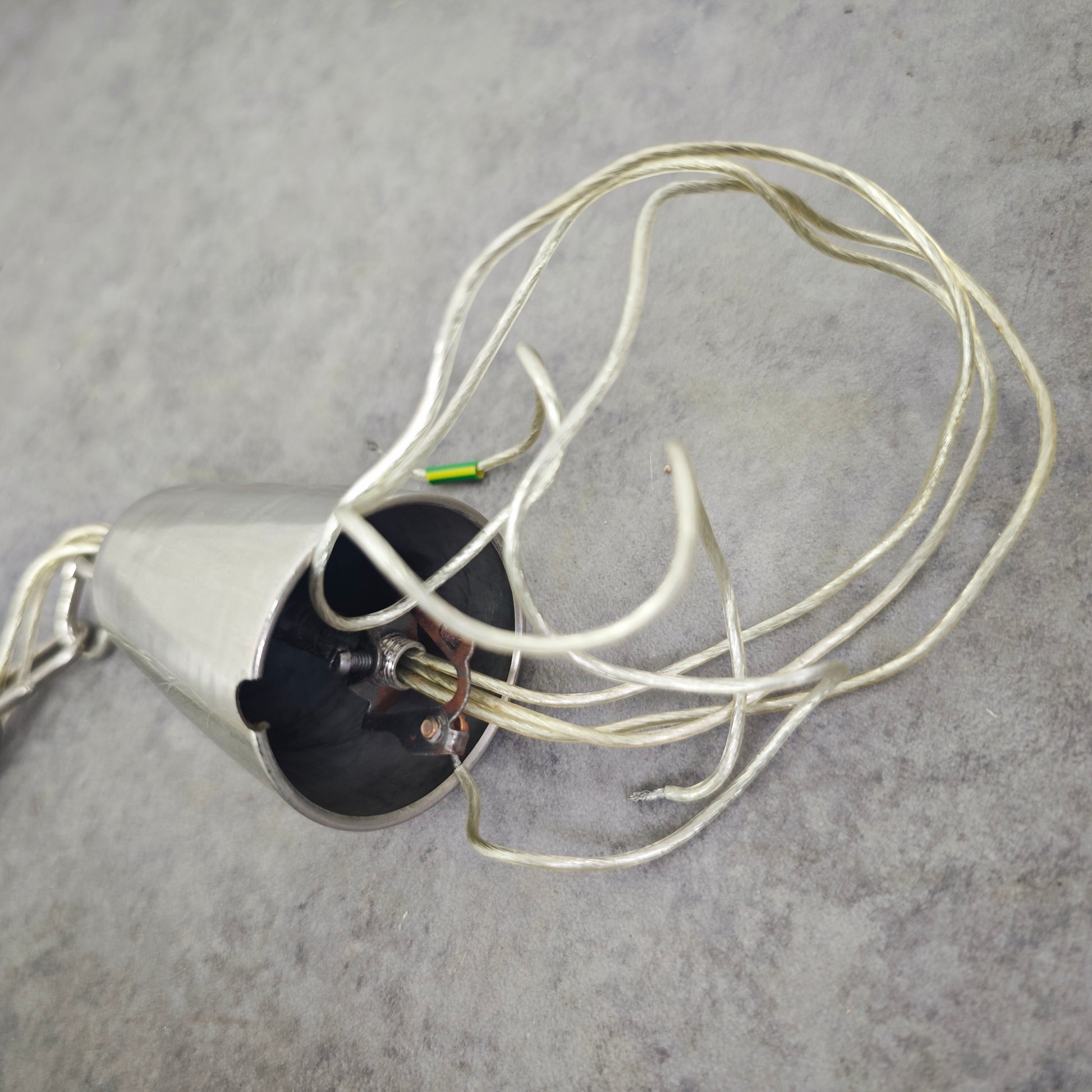 Frage: Ist die Lampe sofort einsatzbereit?Antwort: Ja, sie ist vollständig montierbar und benötigt lediglich ein passendes E27-Leuchtmittel.Frage: Kann die Lampe an der Decke gekürzt aufgehängt werden?Antwort: Ja, die Kette kann nach Bedarf angepasst werden.Frage: Aus welcher Zeit stammt die Hängeleuchte?Antwort: Sie wurde in den 1960er Jahren von J.T. Kalmar gefertigt.