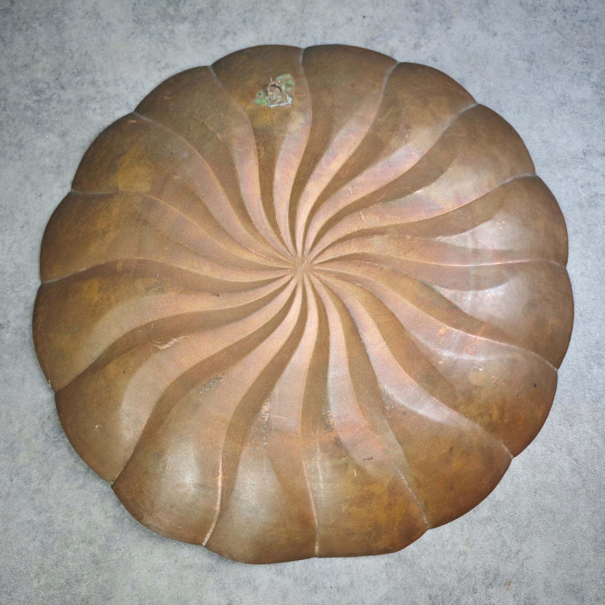 Mit seinem warmen Kupferton bringt der Teller eine natürliche Note in den Raum und passt sowohl in eine rustikale Umgebung als auch in eine Vintage-Sammlung.